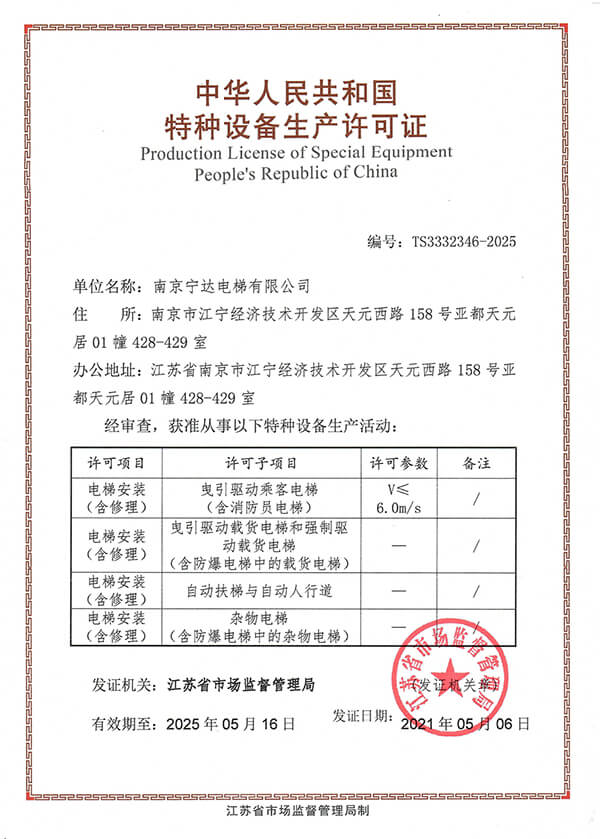 南京寧達電梯有限公司成立于2008年,位于南京市江寧區天元西路158號亞都天元大廈A幢428-429室,公司注冊資金1100萬元,主要合作銷售、安裝、維保國際、國內一線品牌(美的菱王、東芝、上海三菱、杭州西奧電梯等)。擁有價值為500多萬元的配件倉庫。中國特種設備安裝、改造、維修許可證為:TS3332346-2025,為南京電梯安全管理協會的會員單位,連續多年被評為南京市三星級服務單位,并且是江寧地區電梯應急網絡處理中心(96333)的指定服務單位。